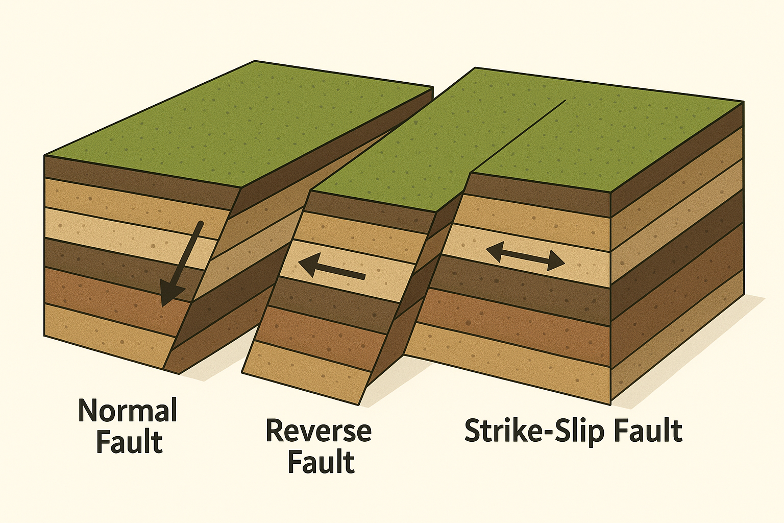 수억 년 전에 형성된 고대의 단층들이 현재에도 지각 내 응력을 받아 재활성화될 수 있습니다.